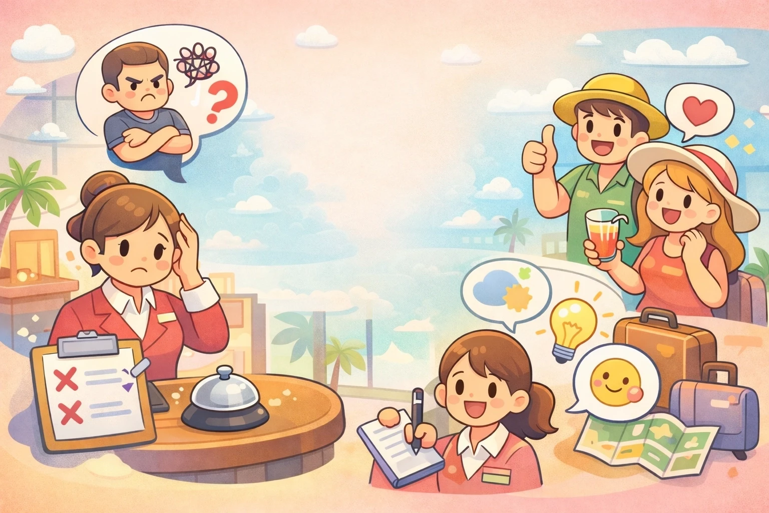Psihologija gosta: Gost koji ima problem je preplašen i iznerviran. Ako mu ne odgovoriš odmah, on počinje pisati lošu recenziju u svojoj glavi.