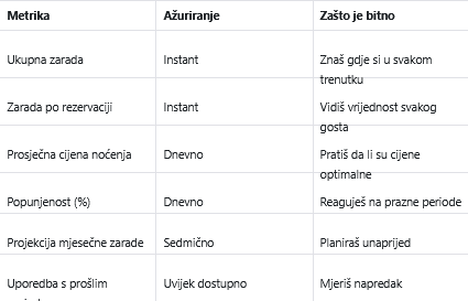 Kad vidiš da ti je popunjenost 85% a cijena ispod prosjeka – znaš da možeš podići cijenu. Kad vidiš prazan period koji dolazi – možeš reagovati na vrijeme.