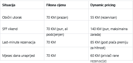 Dynamic pricing zna kada treba spustiti cijenu da popuni "rupu" u kalendaru – i kada je može dignuti jer potražnja to dozvoljava.